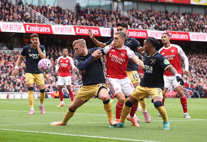 第37分钟,阿森纳组织进攻,苏比门迪直塞禁区,埃泽小角度爆射被扑出,赖斯冷静补射得手,阿森纳1-0西汉姆联,第67分钟,西汉姆联禁区内犯规,阿森纳获得点球,萨卡操刀命中,阿森纳2-0西汉姆联,该比分也保持到终场。此役过后,阿森纳反超利物浦1分,登顶联赛榜首。