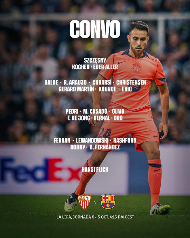 巴萨客战塞维利亚大名单:亚马尔等多人伤缺,巴尔德入选