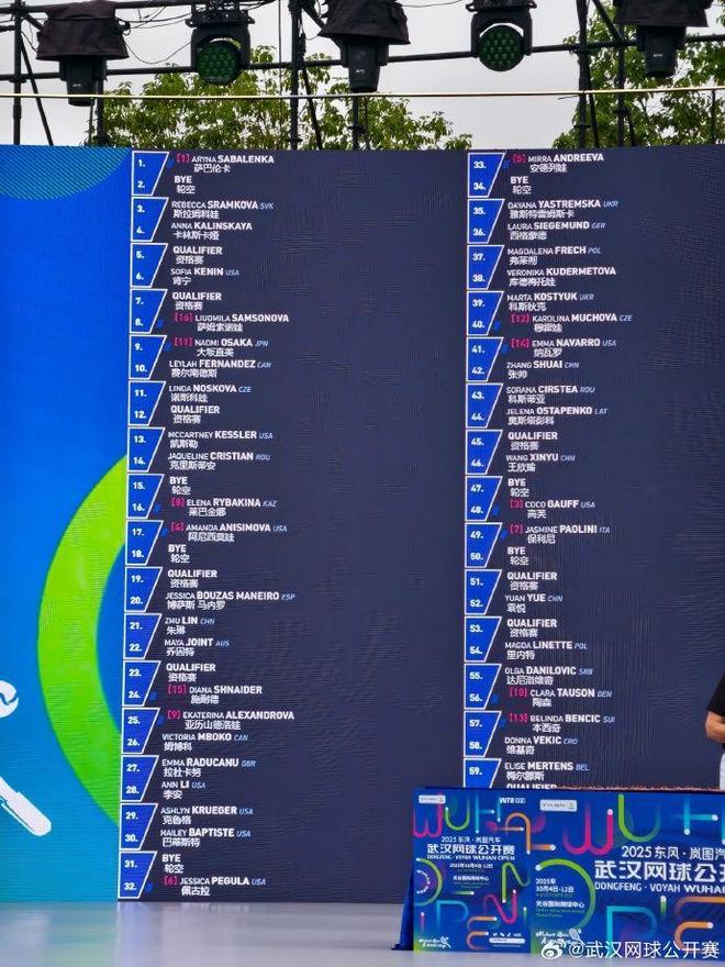 北京时间10月4日,2025年武汉网球公开赛单打正赛签表正式揭晓,世界排名前两位的萨巴伦卡和斯维亚特克分列上下半区,中国金花朱琳、王欣瑜、袁悦和张帅将直接参加正赛。